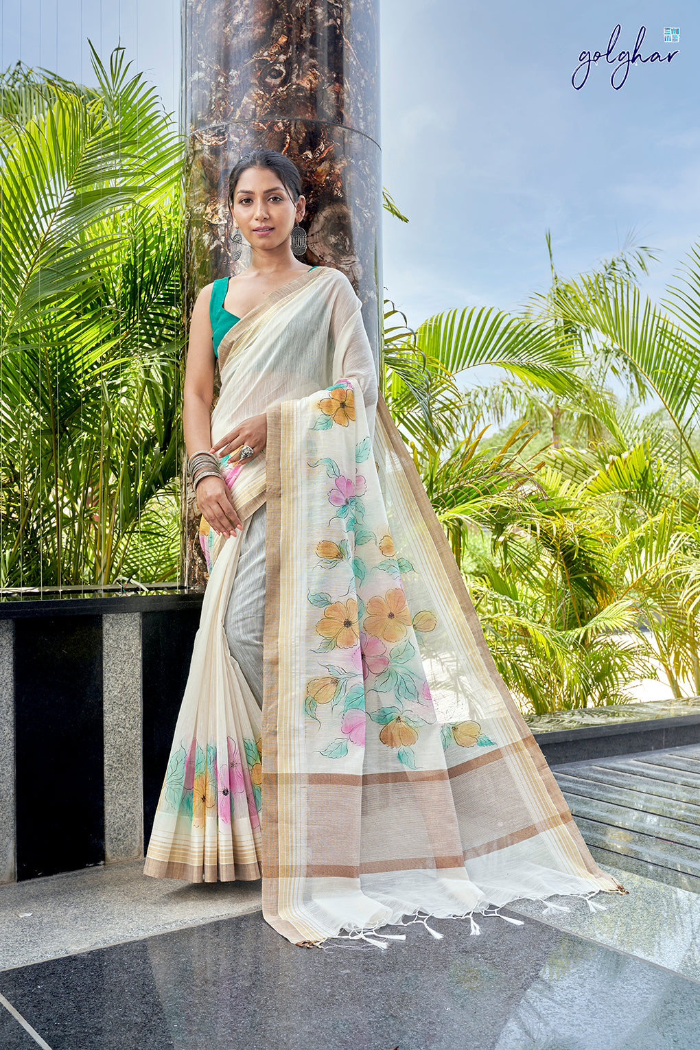 Floral Hand Printed cotton saree. Perfume that is irresistible.