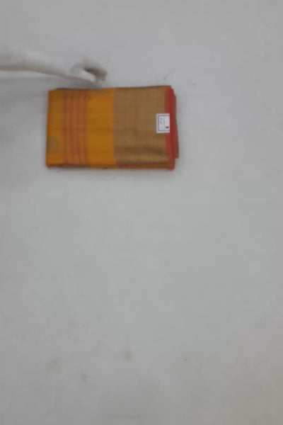 Pure Silk Banarasi Saree with Red Striped Border and Mustard Body