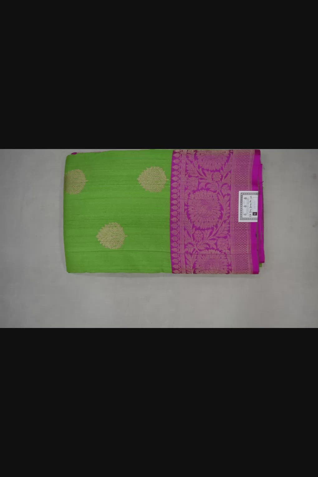 Dupion Silk Banarasi Handloom Kadhua weaved Saree with Parrot Green Body